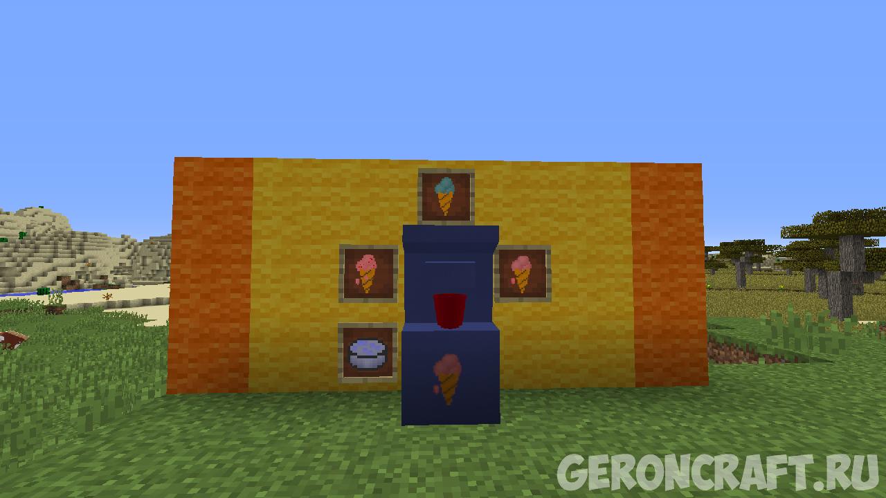 Мод для Майнкрафт о мороженом, разбрызгивании воды, машинах и многом другом.