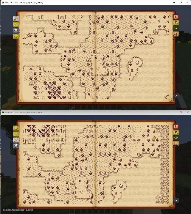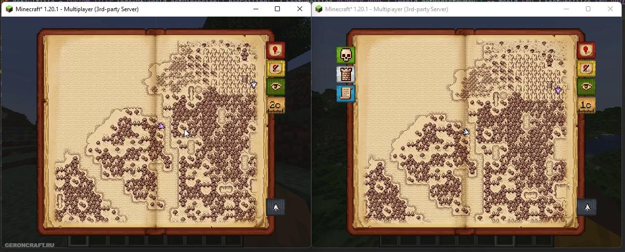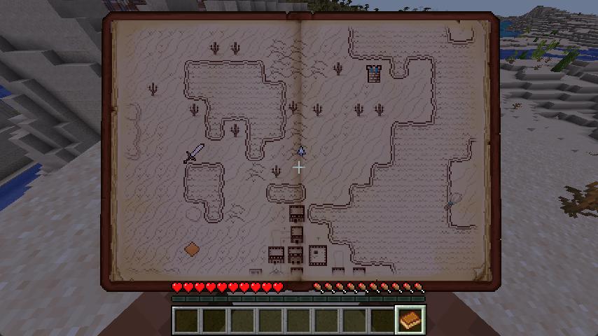 Нарисованная вручную клиентская карта мира с возможностью обмена картами, обнаружения структур и упрощением! Фронтенд карты для Surveyor, основанный на Antique Atlas от hunternif.