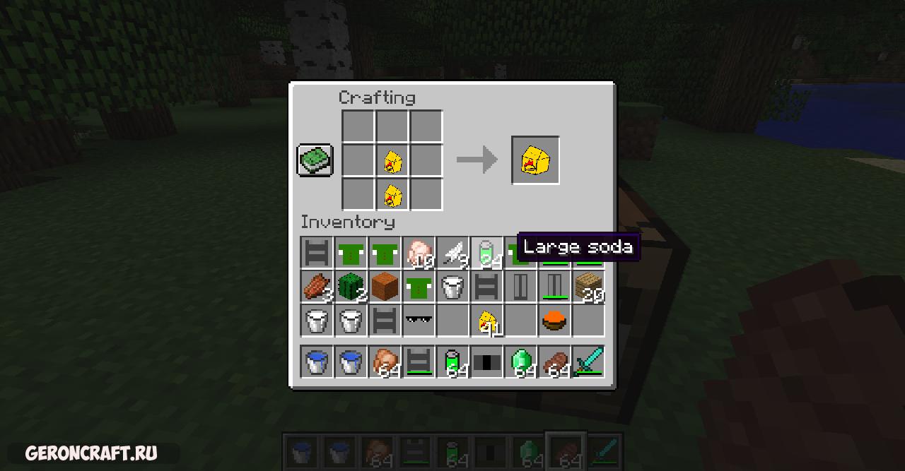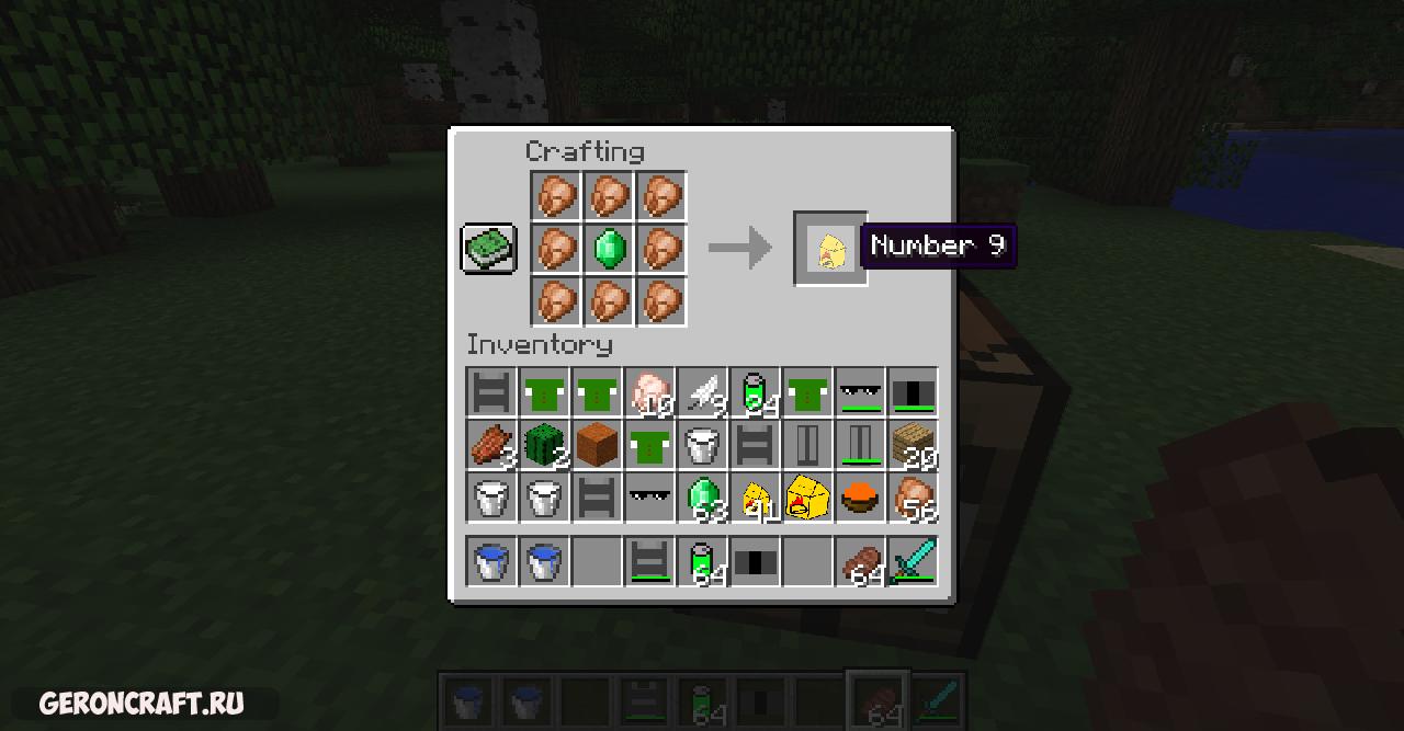 Этот мод включает в себя: номер 9, номер 9 большой, номер 6 с дополнительным падением, номер 7, номер 45, номер 45 с сыром, большая сода, сыр, соус, доспехи, рубашка, очки, обувь, штаны большого дыма.