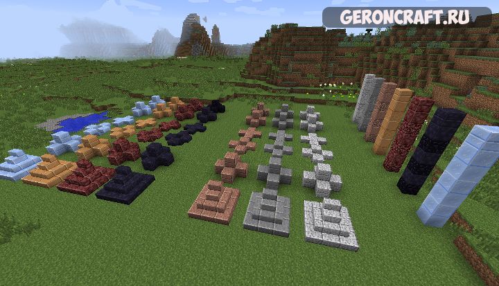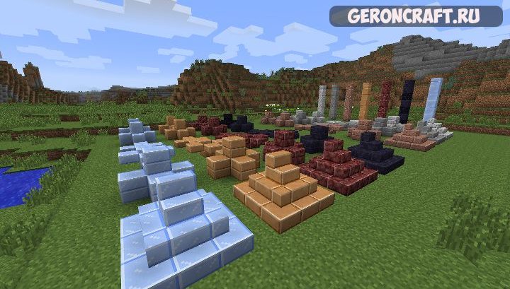 Добавляет следующие блоки в 1.7.10, включает в себя варианты перекрытий и ступеней