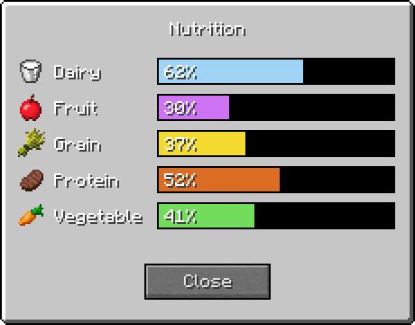 Nutrition — это мод с широкими возможностями настройки, позволяющий создавать системы здравоохранения в Minecraft.