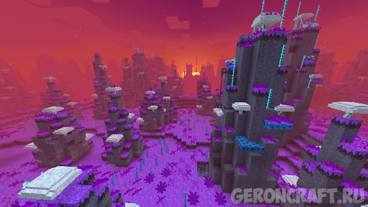 он добавляет много биомов с каким-то сумасшедшим оружием и, не забывая о красивых мобах, добавляет гоблинов, которые крадут ваши руды, и несколько летающих грибов-медузов в тематическом плане, а также некоторые из лучших моделей растений.