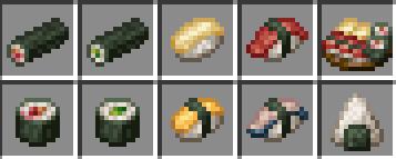 Мод добавит в Minecraft азиатскую еду — в основном это роллы (или суши). Он добавит в игру бамбуковый коврик, на котором, используя сушёные водоросли, можно комбинировать рыбу и получать уникальные виды роллов. Вы также можете добавлять в них соль; Они довольно сытные и помогут надолго утолить голод. Разработчик(и): mrsterner