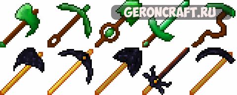 Добавляет Изумрудные и Обсидиановые Инструменты с действительно хорошими текстурами.