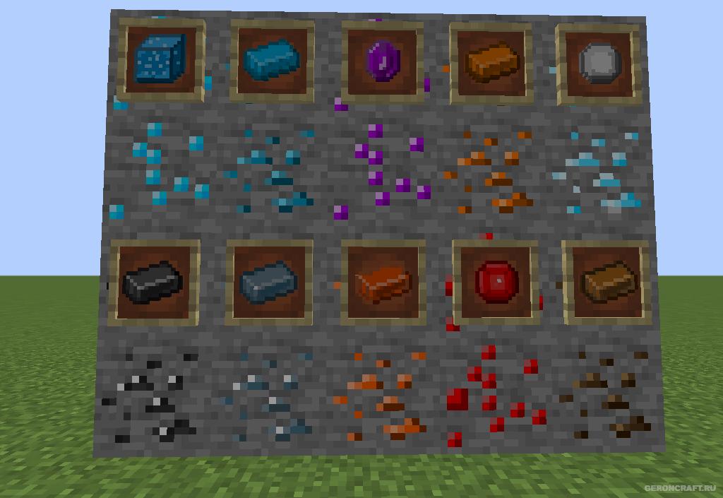 Мод для Майнкрафт что добавляет 10 новых минералов, нового моба, новую кирку и оружие от сообщества фрики.