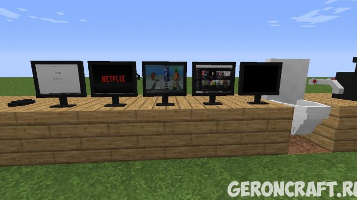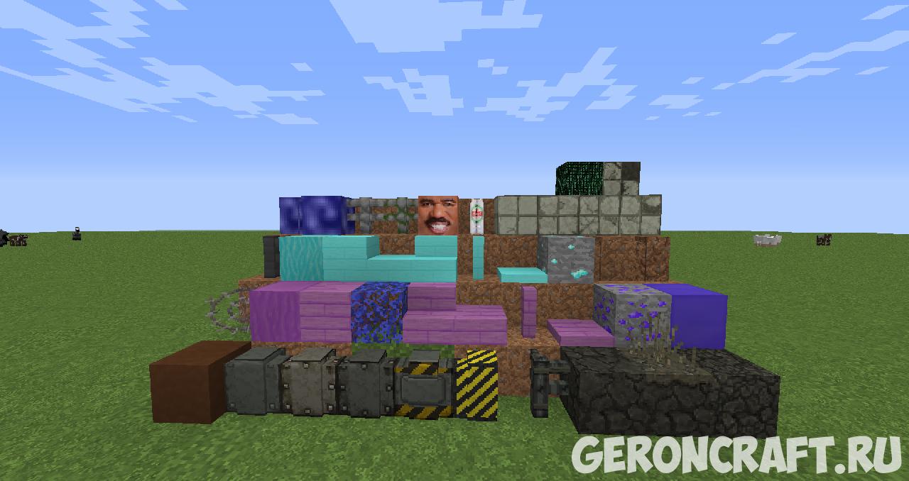 блоки, такие как: металлическая стена, унитаз, компьютер (с анимированными текстурами!), клавиатура, голова Стива Харви, волшебный лес и другие вещи.