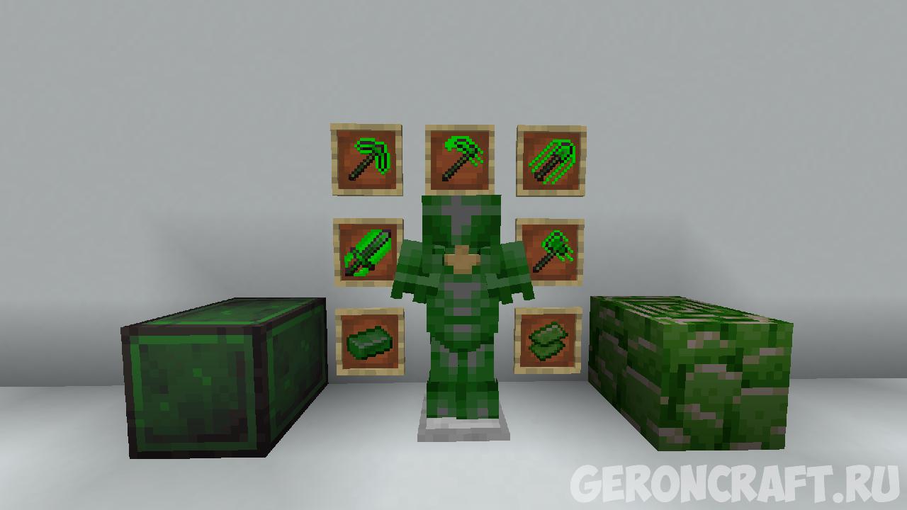 Текстуры для Minecraft что заменяют все инструменты, оружие, доспехи, предметы и блоки Незерита на их версию из Зеленой Ауры Нетерита.