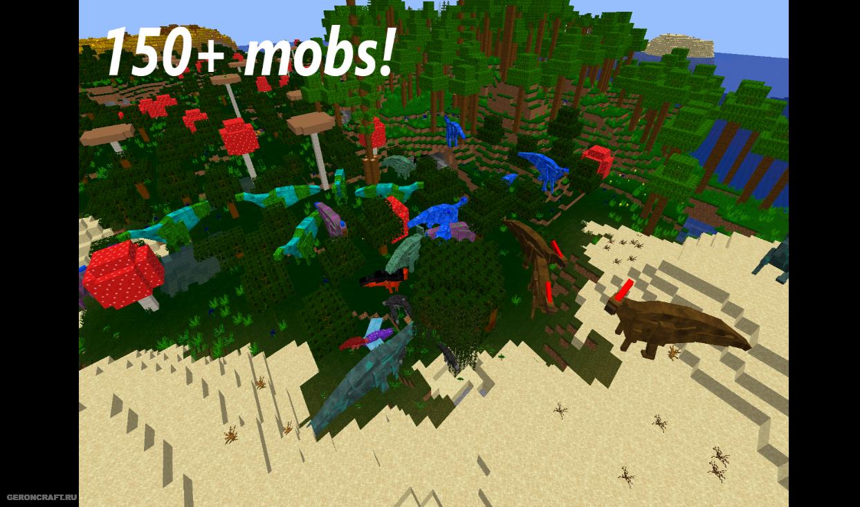 Мод на динозавров, который добавляет 200+ мобов, а также прирученных динозавров и совершенно новое измерение.