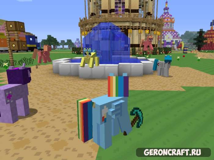 Мод на пони в Майнкрафт о превращении игроков и мобов в пони.