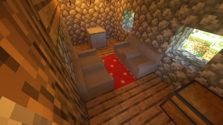 Этот маленький мод рекламирует хороший современный диван-кресло в вашем мире Minecraft, вы можете разместить его в любом месте во всех четырех направлениях.