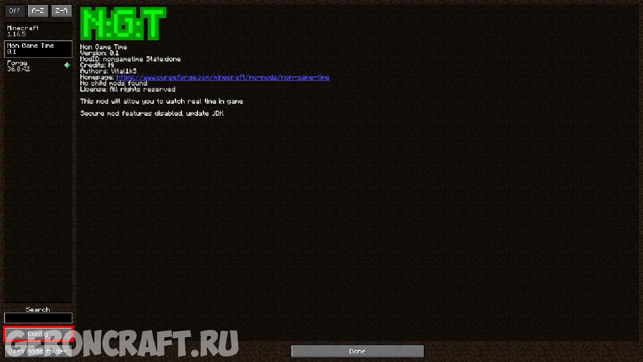 Как установить Non Game Time на Майнкрафт: