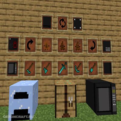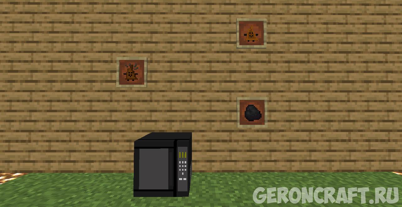 Мод для Майнкрафт про новые блоки, такие как ледяная печь, микроволновка и поворотный стол, 3 новых еды и редкое оружие.
