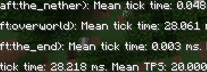 Ниже приведен краткий тест с использованием forge tps. Это было сделано путем добавления около 200 овец в мир и отслеживания разницы во времени тиков.