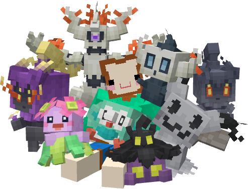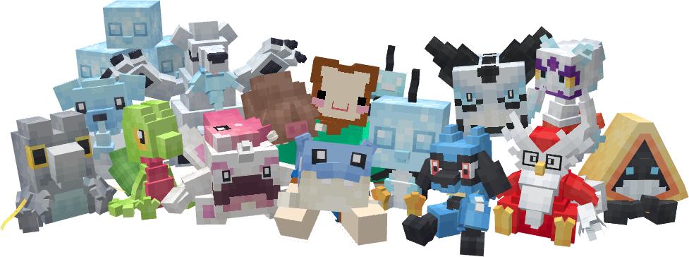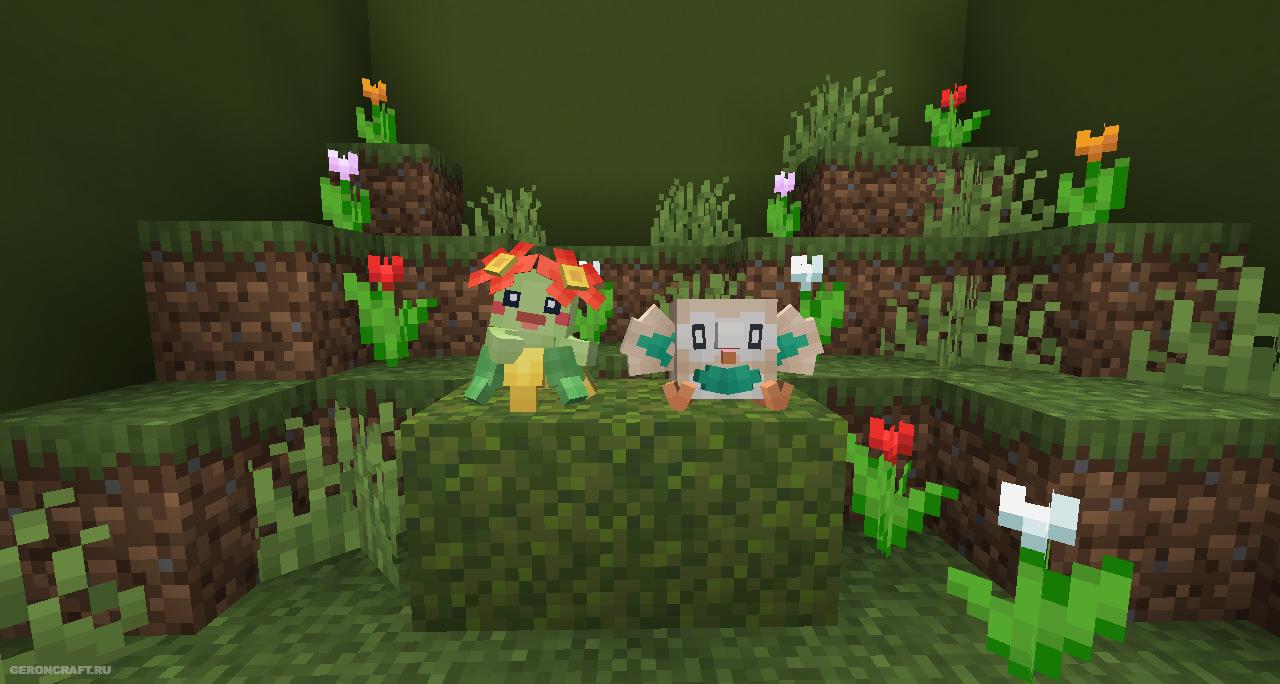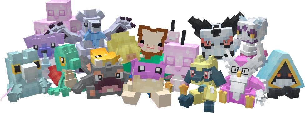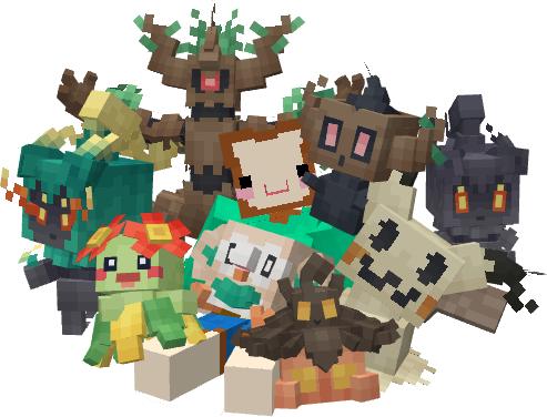 Добавляет в ваш мир блоки и куклы в стиле покемонов