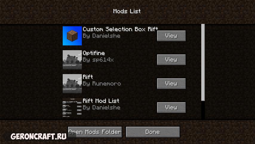 Как установить Rift на Майнкрафт:
