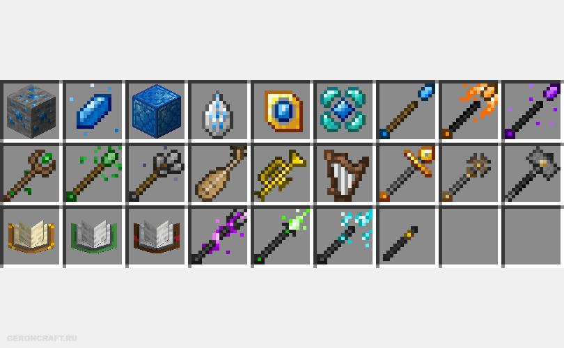 Мод для Майнкрафт про магическое оружие полуванили в игре.