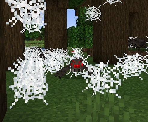 Минималистичный настраиваемый мод, который заставляет пауков и пещерных пауков периодически создавать сеть, когда игрок находится рядом. Полотна могут быть созданы только в том случае, если паук находится в воздушном блоке. Эффект в действии с задержкой, установленной на 40 тактов (как правило, это слишком быстро, imo):