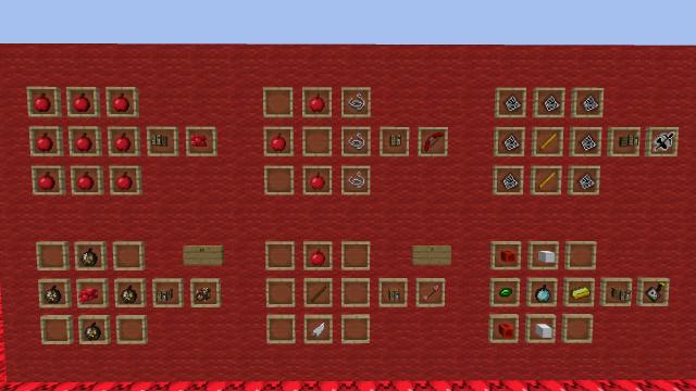 есть 36 новых яблок в моём моде, которые можно изготовить из этих материалов (слева направо):
