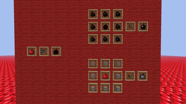 (грязь, булыжник, камень, обсидиан, светящаяся пыль, светящийся камень, яблочный блок, скала, кирпич, кирпичи алмаз, алмазный блок, изумруд, изумрудный блок, эндон, железный слиток, железный блок, ляпис, блок ляпис, планки, бревно, кварц, кварцевый блок, нетканый камень, песочный песок, пыль из красного камня, блок из красного камня, шерсть (только белая), шарик слизи, блок слизи, губка, песок, лед, уголь, угольный блок)