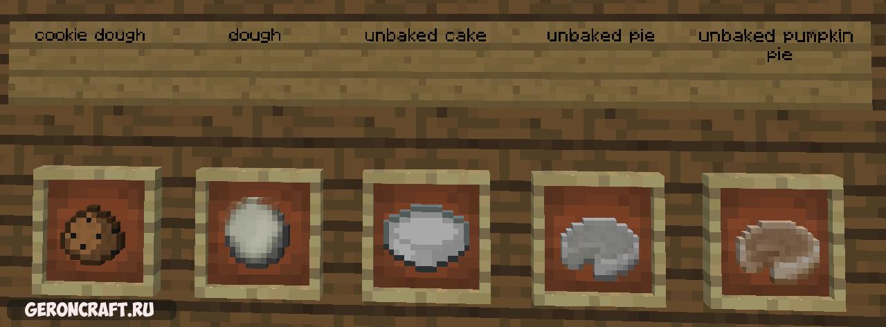 Поскольку этот мод полностью пересматривает способ изготовления выпечки, автор рекомендую использовать JEI, но рецепты и предметы для крафтинга были размещены на Вкладка изображений.